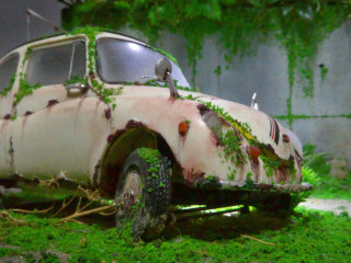 | 25.12.25 秘境駅で知られる飯田線の小和田液にヒントを得て、ぼろぼろになった subaru 360 を主役にした新しいジオラマをつくってみました。 |
