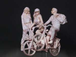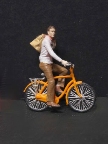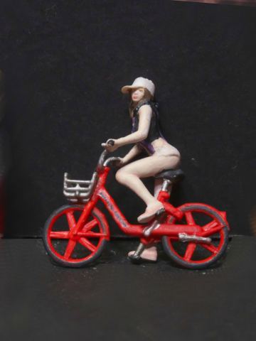 自転車のフィギュアにはもう少し手を加えました。ボディから浮いているサスペンダーが途中で欠損していたので、紙でこれを補う。(A) そしてものすごく短いショート
