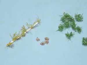 枯草表現に使用するのは3タイプ7種類、まずは枯草色のターフ、そして枯草色と茶色のファイバー、あとは手持ちのドライフラワー4種類です。