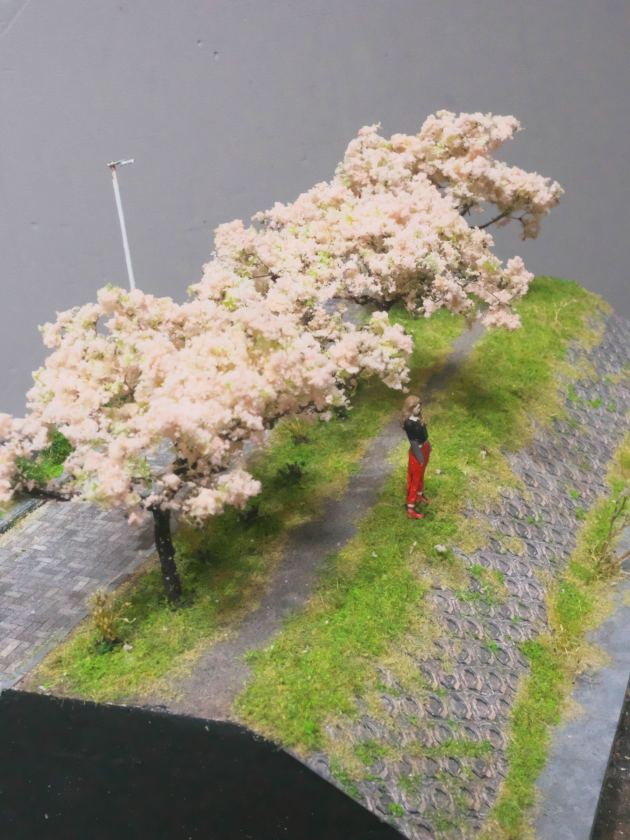 歩道沿いには芙蓉の木があるのですが、成長が早いので、冬場は全て切り取られて根っこだけになっている。モデリングペーストに伸ばしランナーを短く切ったものを押し込み、