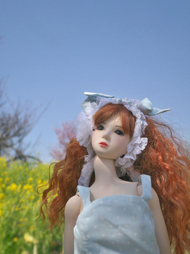 昨年末にリメイクした chie というオリジナルドールの撮影テストをするために、いつもの花菜ガーデンにやってきました。いろんな条件の下で撮影すると、人形について