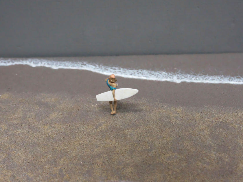 海岸とバイク、主役のサーファーが一人という実にシンプルなジオラマで、大きさは27cm×い18cmのA4に満たないサイズです。