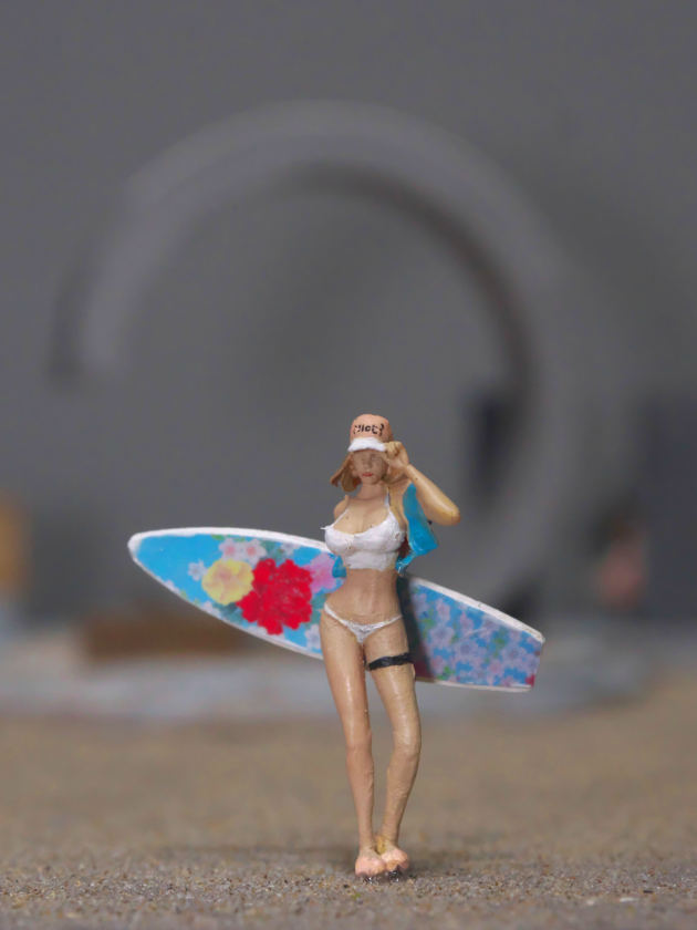 サーファーの彼女はTEMUで569円、スクーターの方はAliexpressで347円。1/64スケールなので身長は28mmしかないけど、3Dプリンターで制作されたこのフィギュアは