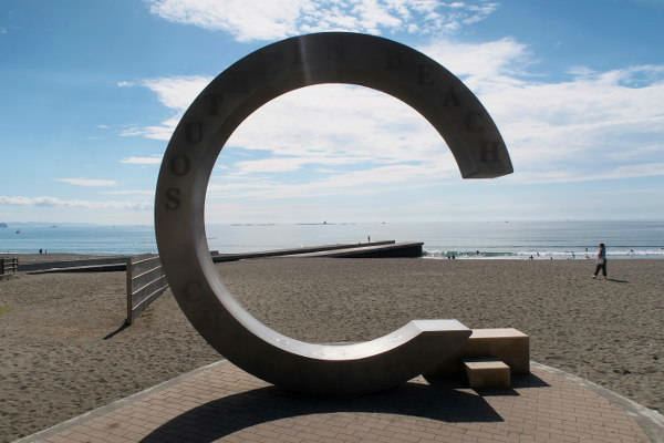 そして選んだ場所は、言わずと知れたサザンビーチちがさきです。海岸に降りてゆくところにはこの「C」のモニュメントがあるので、これさえあれば誰が何といおうと