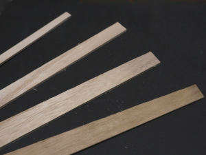 ベースボードの組み立てに入ります。ヒノキの薄板を加工して、まずは長方形の枠組みをつくります。