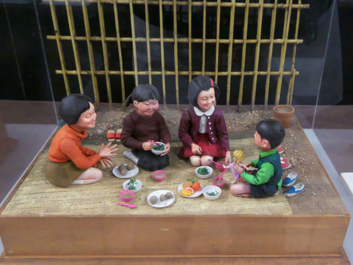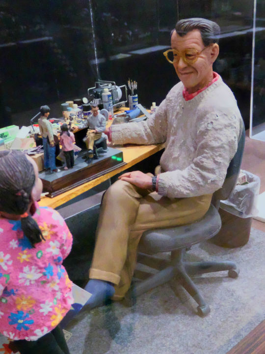 へー、こういう普通の場所で制作してるんだって、まずは思う。そして左に写っているのは娘さんで、その状況そのものが机の上にさらに縮小されてジオラマに再現されている。