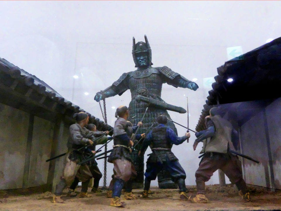 ビリケン商会から発売されていた大魔神に手を加えて、映画の1シーンを再現したもの。雑兵のフィギュアはすべて自作したという作品です。
