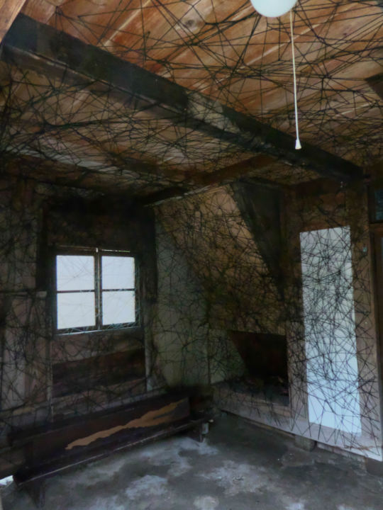 外から見たら、ごくありふれた普通の民家なのだけど、入ってみると無数の黒い糸が張り巡らされている。
