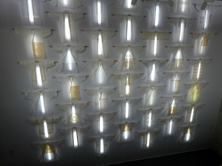 薄衣の背後にLEDが取り付けられで輝く、あたかも人がそこにいるようで生命感を感じる。