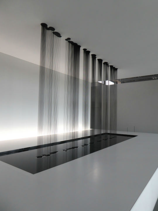 美術館は入ってすぐに広大な池がひろがり、そのまわりを吹き抜けを回廊が囲むという、なかなか見られない空間になっています。 この美術館そのものも