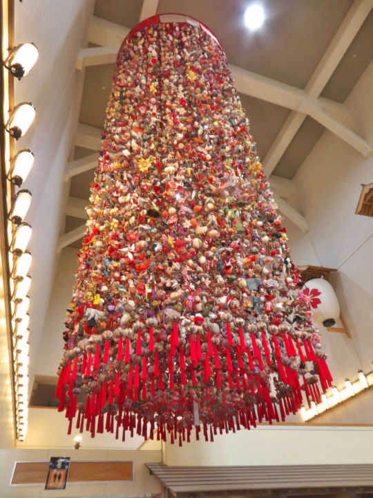 美術館のお隣には道の駅「クロステン十日町」があります。こちらでひときわ目を引くのは巨大な吊るし雛で、高さ10m、重さ350kgもあるとか。雛の数は全部で