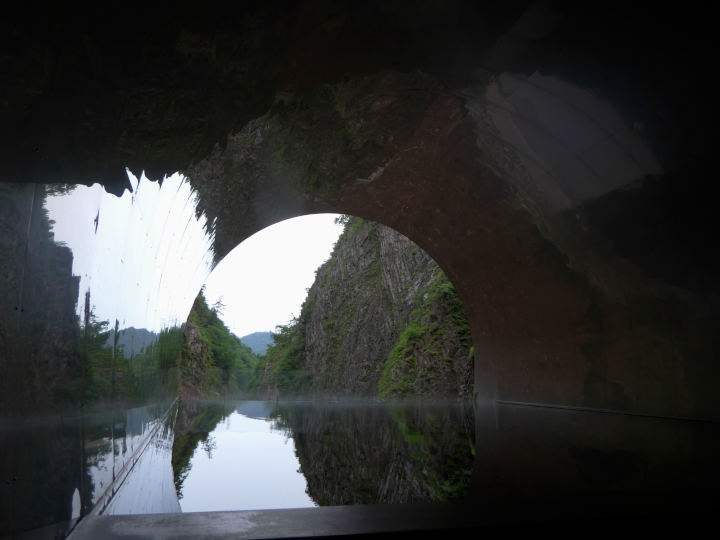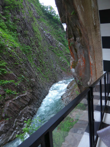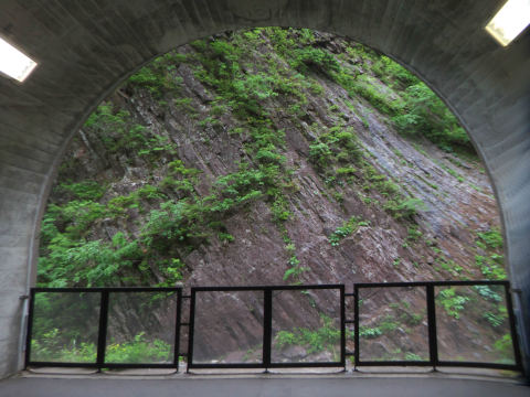 眼下には清津川の急流、トンネル自体はこの川に並行して彫られていて、奥に向かって登ってゆく感じです。