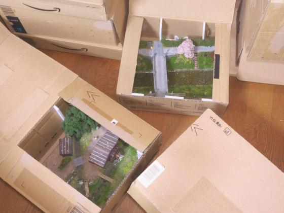 ジオラマという形式では展示まで時間がないので難しい。ということで演劇などで見られるちょっとしたステージを作ってみました。