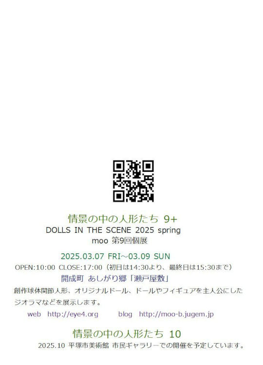 ということで、終了から4ヶ月が過ぎたところで、やっと「情景のなかの人形たち9+」のレポートが完了です。