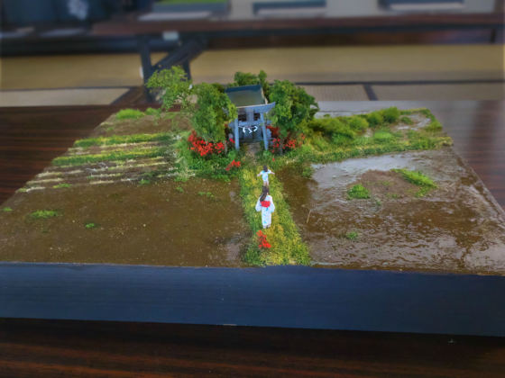 2番目の部屋には、近隣の景色を再現したジオラマを中心に20ほどの作品を展示しました。
