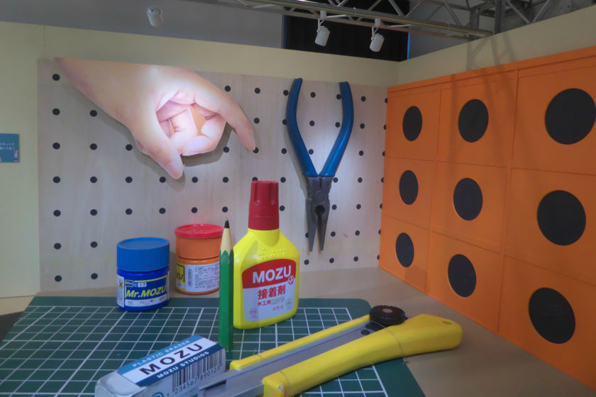 MOZUさんの作品の特徴としては、リアルサイズなものとミニチュアを同じ空間内に置いて、あたかも本当に「こびと」がいるようにみせているところなんだろうな。