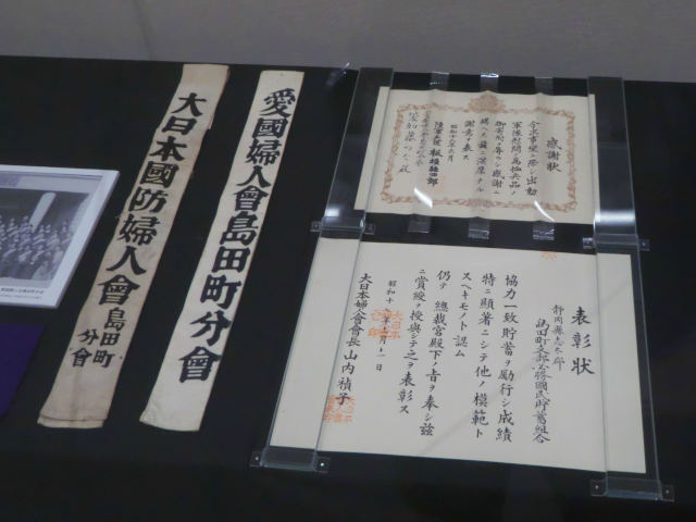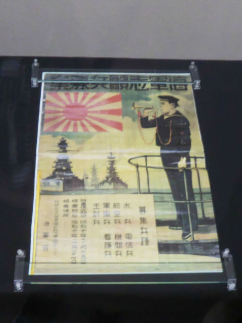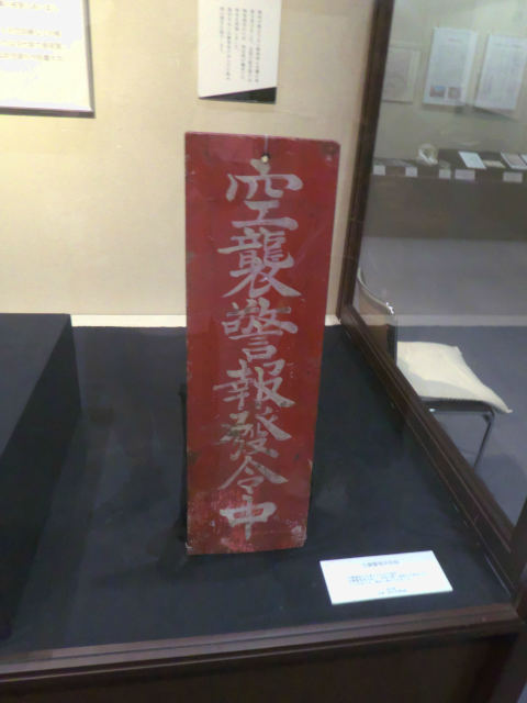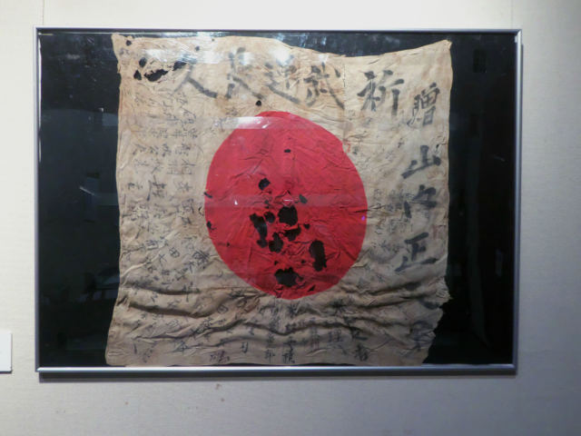 展示としては、兵士募集のポスターや戦地に赴く兵士への寄せ書きに始まり、その後の空襲から終戦に至るまでの間の様々な史料が展示されています。