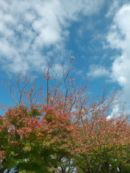 コスモスや秋バラも咲いていたし、紅葉も始まっていた。でもこちらはちょっと気になるところがあって、秋バラはかなりの数がつぼみの段階で暑さにやられていた。
