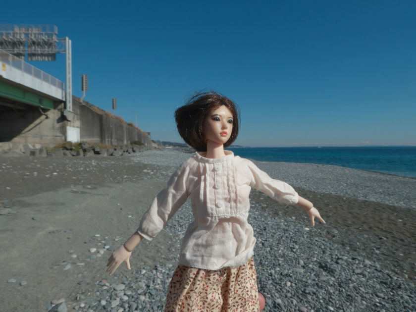 海岸に出るためには、西湘バイパス(国道1号線バイパス)を越えないといけない。西湘バイパスは防潮堤の役割もあるので、一段高いところを通っている。
