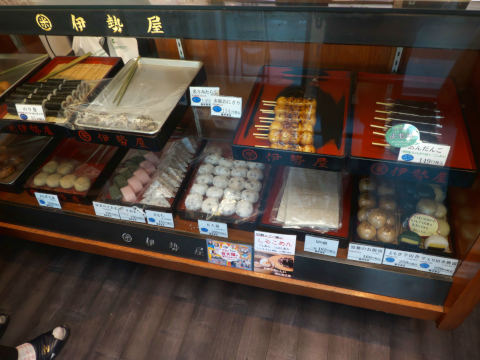 通りで伊勢屋という老舗のお菓子屋さんが目にとまった。こちらでおいなりさんと和菓子、お茶などを買いこんだ。
