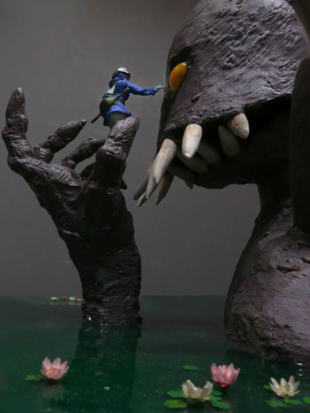 今回のジオラマは劇中に登場したものではなく、自分自身がイメージした水辺でのシーンです。登場するのは巨神兵とナウシカだけ、シンプルなんだけど、個々に少しだけ