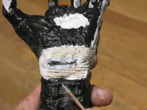 さて表面がこのままでは全然リアルでないので、粘土を使ってシワや血管、肌の荒れた感じなどを表現してゆきます。使用するのは例によってTEMUで売っていた
