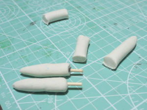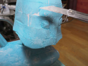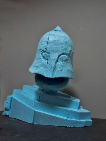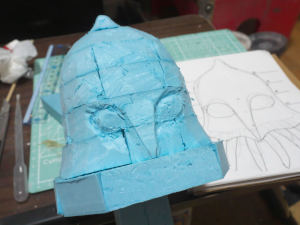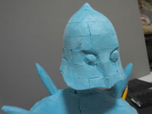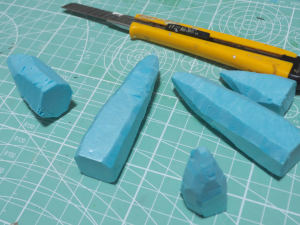 肩と背中にある突起をつくります。まずはスタイロフォームでざっくりと整形します。