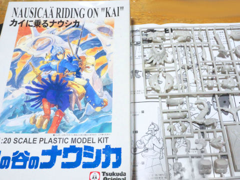 1/20スケールのナウシカについては、現在でも3種類のプラモが入手可能で、今回はツクダオリジナルの「カイに載るナウシカ」を使用します。パッケージに