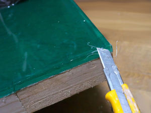 接着剤は発泡スチロール用を用います。接着から2時間程度の時間をおいて、カッターで大まかな形を切り出します。