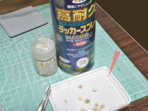 本体の塗装が終わったところで、付属品を取り付けます。