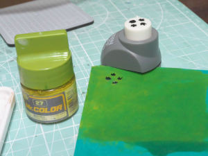 次は着色した紙を葉っぱの形をしたパンチで打ち出します。