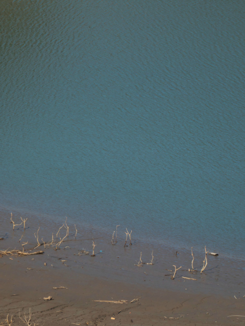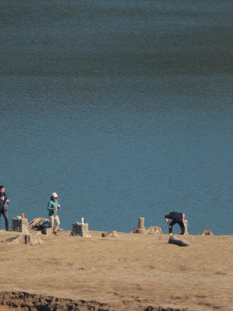 その昔は林だったんだろうと思う。白化した木がいくつも湖底から伸びている。